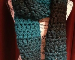 It’s a really beautiful scarf, vibrant colors…looks really great next to brown or gray clothes.
